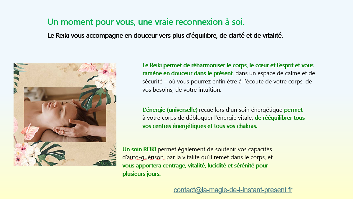 Envie de retrouver équilibre, apaisement et vitalité ? Le Reiki est une pratique douce qui réharmonise votre énergie vitale en profondeur.