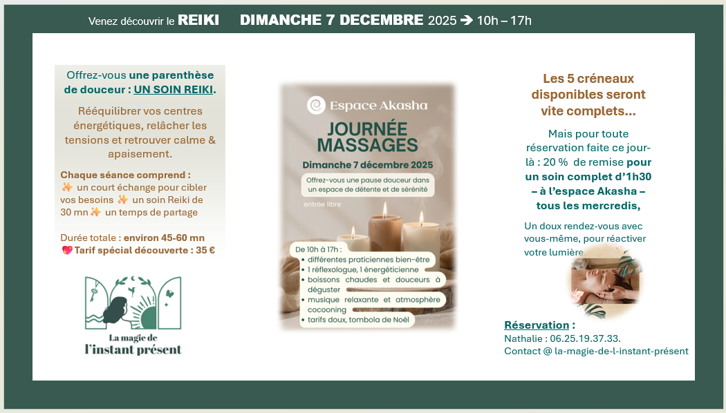 N’hésitez pas à visiter mon blog pour découvrir des articles inspirants, des conseils pratiques, des récits de transformation personnelle (le mien) et suivre les enseignements magiques du village « La magie de l’instant présent ».