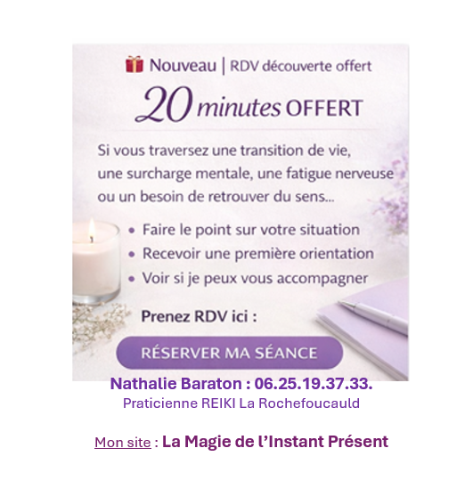 À travers des soins énergétiques (Reiki), des pratiques douces et des rituels symboliques et des ateliers pratiques, vous allez :